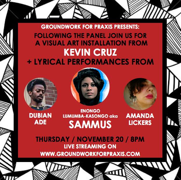 On Thursday November 20th I am honored to be performing as part of an incredible program being facilitated by the anti-colonial collective, Groundwork for Praxis, entitled “Resisting Domination: Theory to Action, Action to Theory.” The event will feature a panel discussion on intersections between different resistance movements from 6-8pm followed by a reception and performances. You can come check out the event at the Africana Studies and Research Center [310 Triphammer Road] or you can livestream the event here: http://groundworkforpraxis.com. Either way, make sure you RSVP on Facebook, and I’ll see you there.