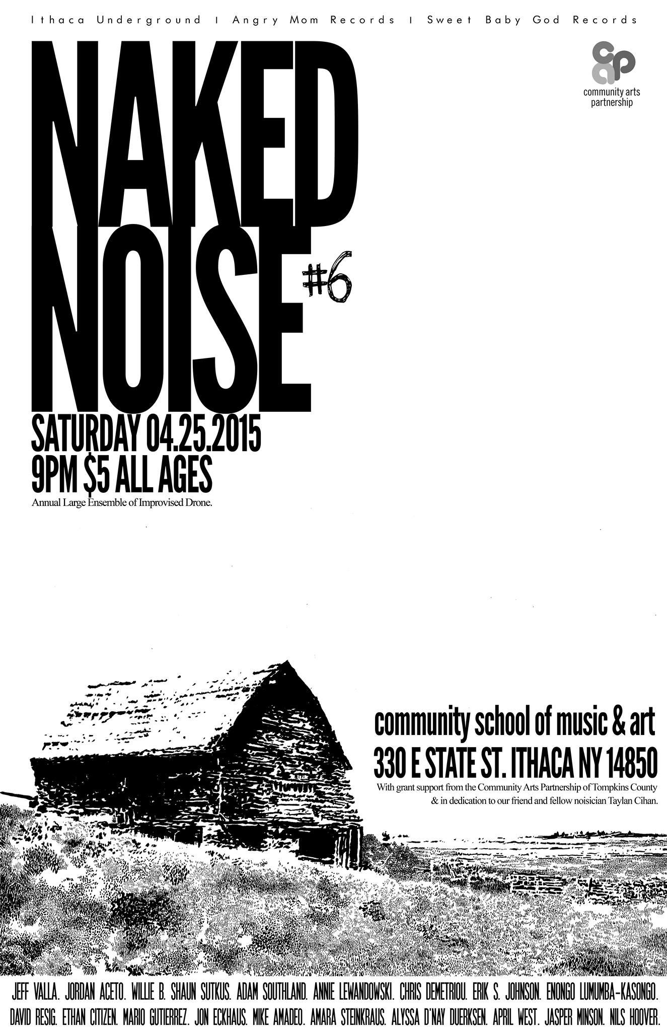 Exciting news — on April 26th I will be joining forces with Ithaca Underground, Angry Mom Records, and Sweet Baby God Records for the 6th Naked Noise, “an annual large ensemble of improvised drone.” The event will be held at the Community School of Music and Arts [330 E. State St] beginning at 9pm for just $5! For details and to RSVP on Facebook head HERE.