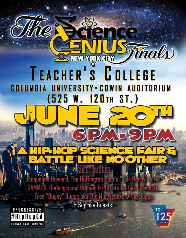 Exciting news! On June 20th I will be serving as a guest judge at the Science Genius Finals alongside The Huffington Post’s Jacqueline Howard (the Associate Science Editor and host of “Talk Nerdy to Me”) and Fred “Bugsy” Buggs of WBLS 107.5. There’s also the promise of special guests…will Science Genius co-founder GZA be in attendance? For those that don‘t know, Science Genius is a hip-hop science fair and rap battle that was developed by Dr. Chris Emdin and GZA. As luck would have it, my tour with Mega Ran, K-Murdock, brentalfloss, and D Nilsz starts the next day, so the first three at Webster Hall right afterwards. For tour updates head HERE.
